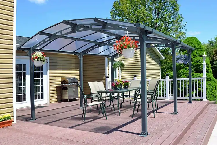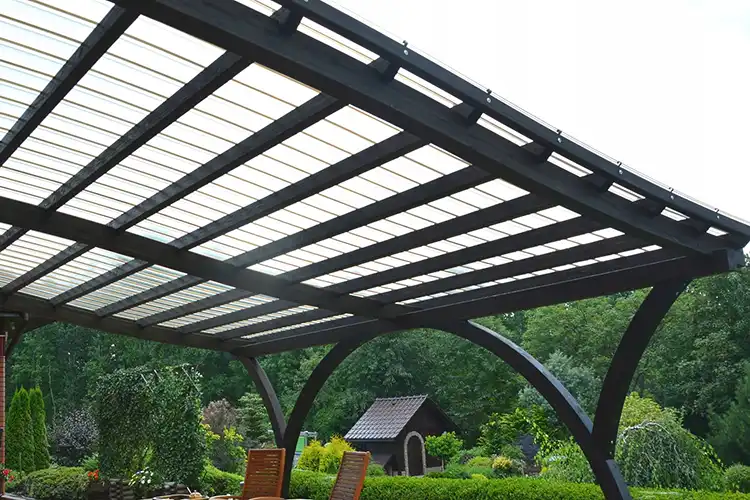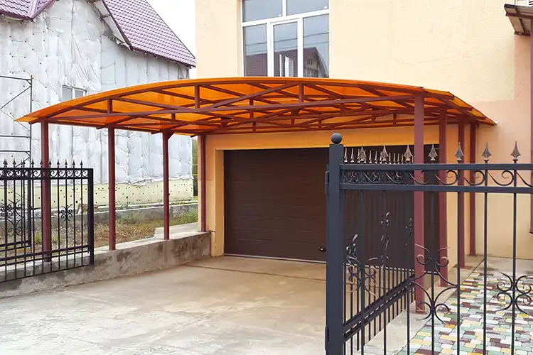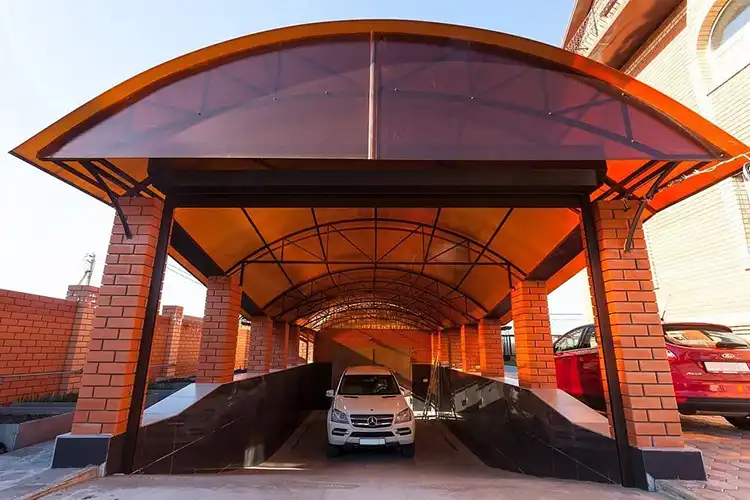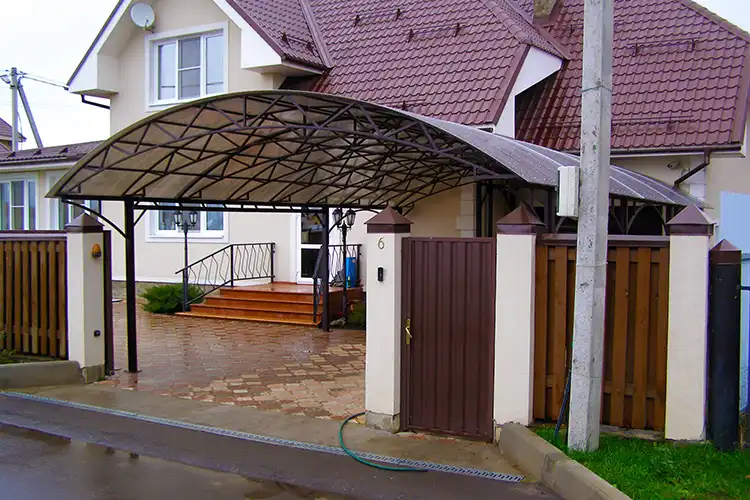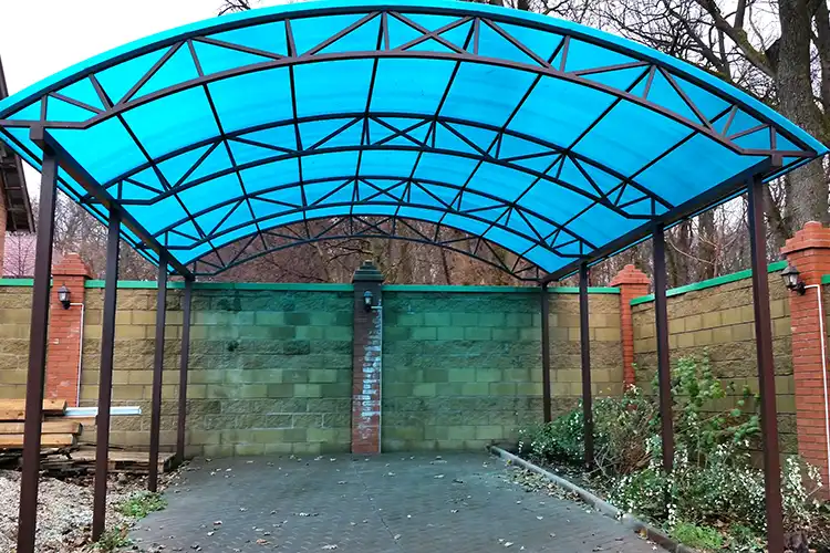 По типу кровли стоит разделить навесы, изготовленные с использованием поликарбоната на: односкатные, двускатные, арочные, купольные, каскадные.